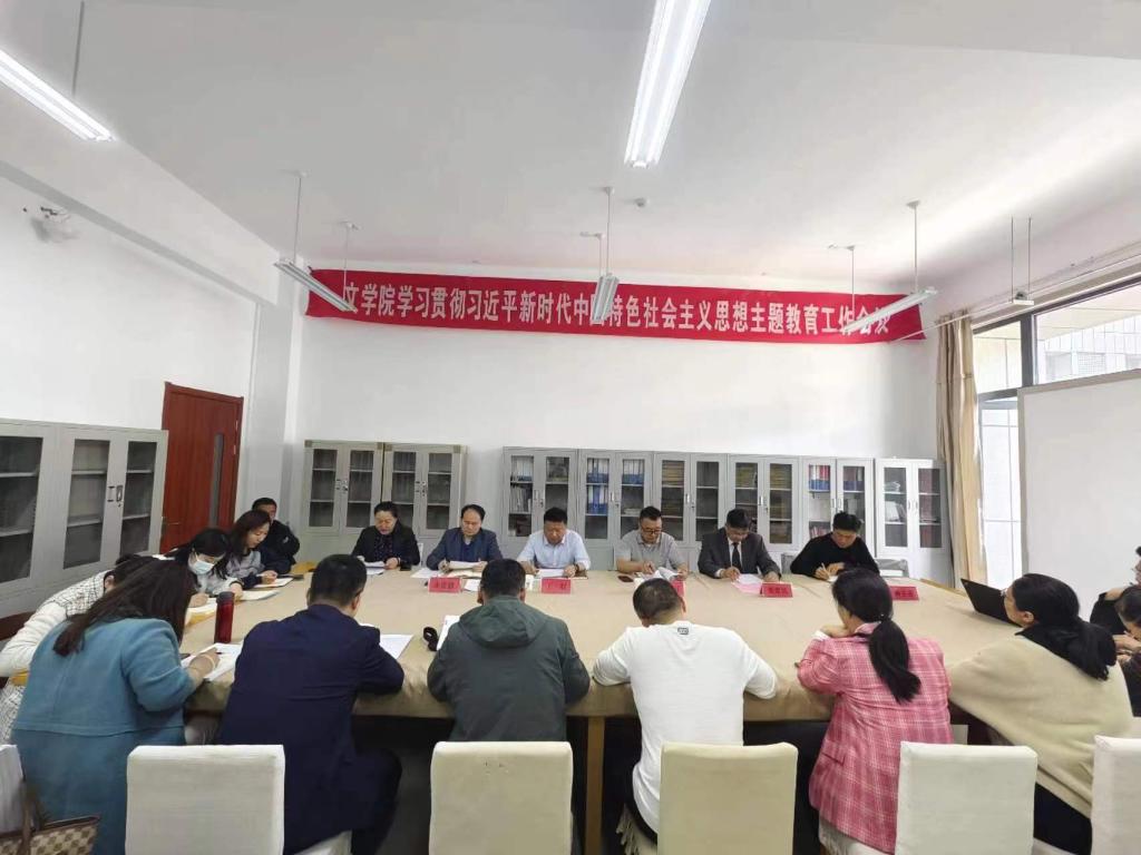 4月26日下午,beat365官方网站在新城校区豁然楼B310室召开学习贯彻习近平新时代中国特色社会主义思想主题教育工作会议,深入学习贯彻习近平总书记重要讲话精神,按照学校党委部署要求,对全院开展主题教育进行安排部署。党总支书记宋建修做动员讲话,学校党委第六督导组组长丁聪出席会议。教师党员和学生党员代表参加会议,beat365官方网站党总支副书记、院长张爱民主持会议。