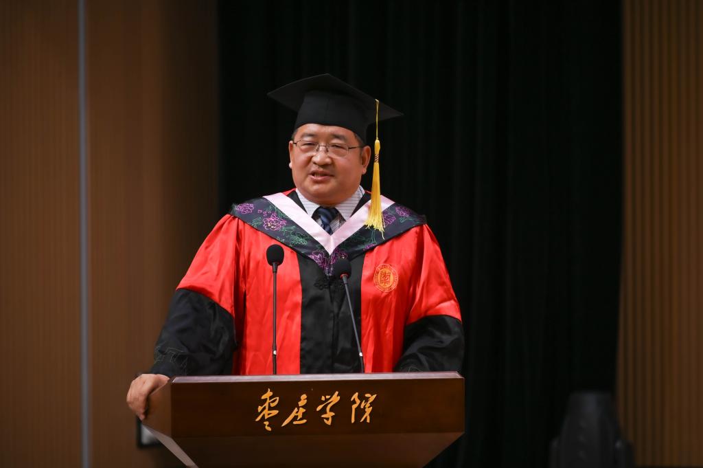 最后,张爱民发表了热情洋溢的毕业致辞。他殷切寄语毕业生:要做心怀远方的追梦者,以理想为帆,驶向星辰大海;要做温暖如光的摆渡人,以仁爱为桨,传递人间温情;要做底蕴深厚的思考者,以智慧为灯,照亮前行道路。他勉励同学们永葆昂扬向上的奋斗姿态,以赤子之心拥抱时代,以开拓之志勇攀高峰,在人生的广阔舞台上挥洒才情、成就梦想。