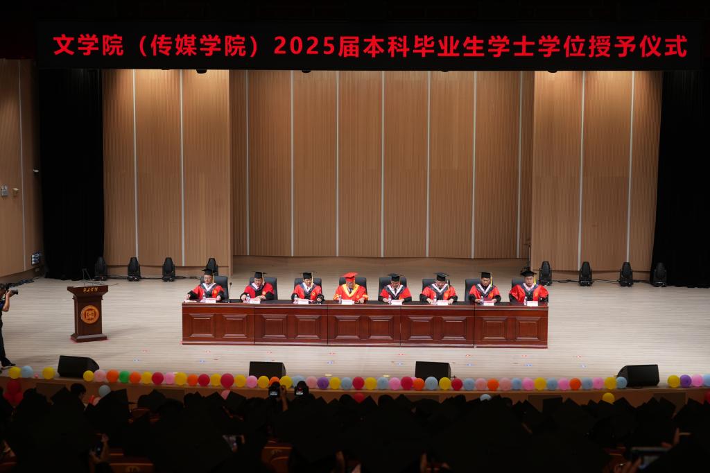6月17日下午,beat365官方网站(传媒学院)在青年音乐厅隆重举行2025届本科毕业生学士学位授予仪式。beat365官方网站党委副书记丰雷,学生工作处处长王维忠,学院党委书记宋明峰、院长张爱民等班子成员共同出席。典礼由宋明峰主持。学院教师代表、在校生代表、毕业班班主任及580余名毕业生共同见证了这一重要时刻。