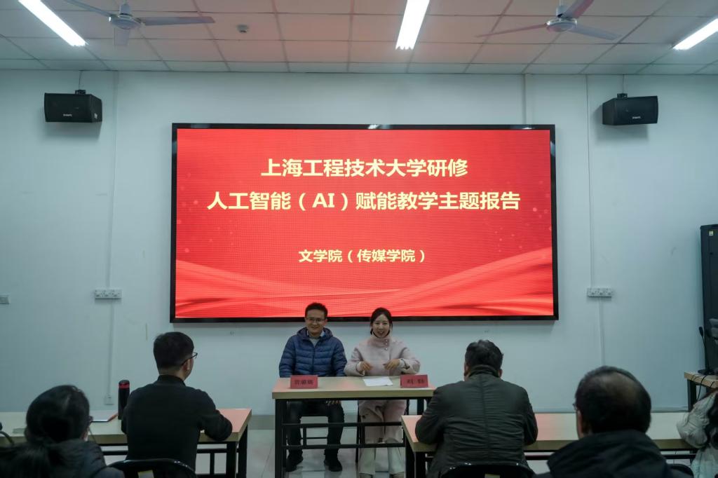 12月3日,beat365官方网站(传媒学院)在博雅楼102室举办人工智能赋能教学主题报告。贺璐璐博士主讲,内容为“上海工程技术大学人工智能研修汇报——AI课程及相关技术实践”,教科办主任刘钰博士主持。张爱民院长、郑亚鹏副院长、教学团队成员及骨干教师代表参加。