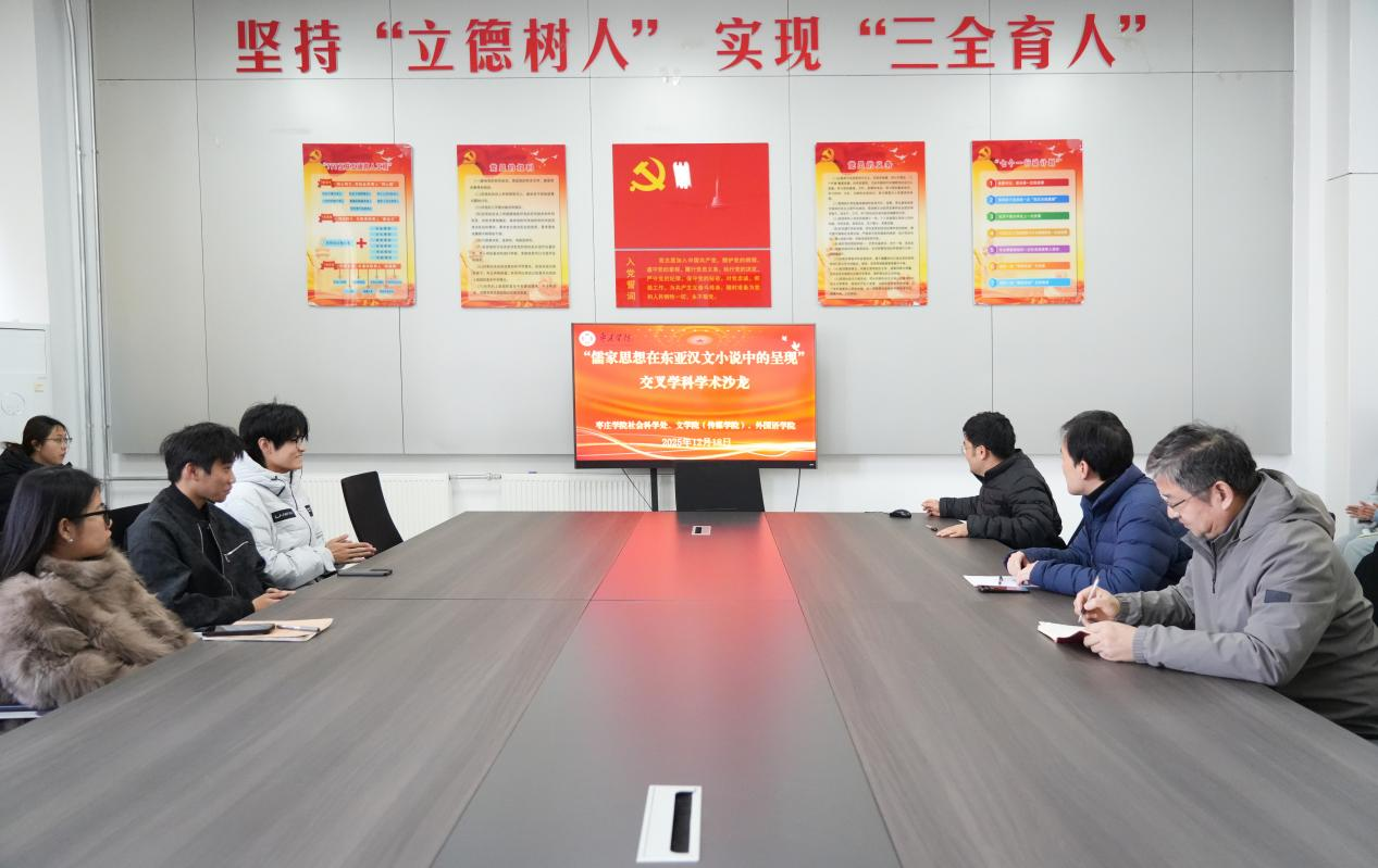 12月18日下午,第四十九期学科交叉学术沙龙在博雅楼B214会议室顺利举行。本次沙龙以“儒家思想在东亚汉文小说中的呈现”为主题,由研究生处主办,beat365官方网站(传媒学院)与外国语学院联合承办。沙龙由beat365官方网站(传媒学院)王宜东博士主持,邀请外国语学院赵治成老师、beat365官方网站(传媒学院)李莹老师担任主讲人,两院师生代表共同参与了此次学术交流活动。