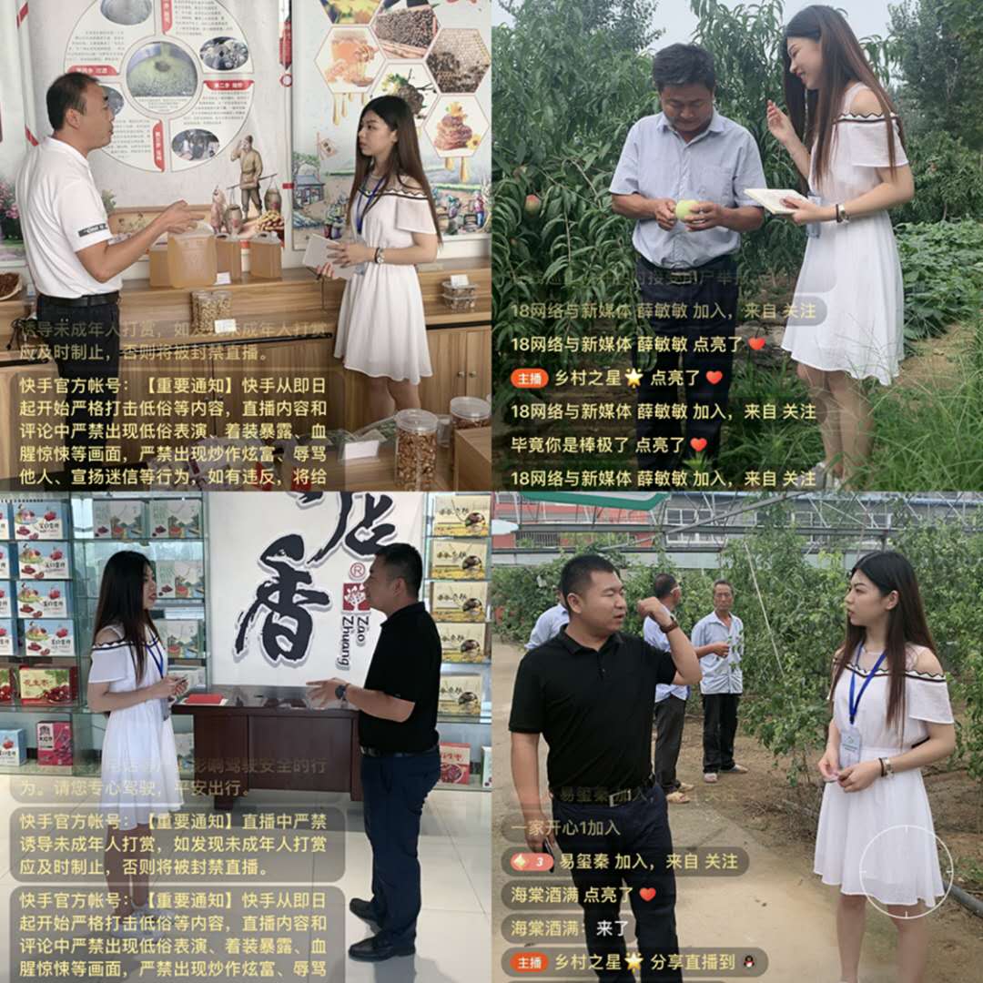 走进直播间,尝试解题方法。7月27日下午,beat365官方网站大学生“乡村之星”新媒体咨询服务社会直播团队的同学们在党总支书记史大丰老师的带领下来到山亭区冯卯镇和店子镇,开启了直播助销农副产品的新体验。在冯卯镇先锋驿站,志愿者对冯卯镇的特产地瓜干、桃胶等产品进行了一一介绍,并走进桃林,边摘桃边介绍桃子的营养价值;在店子镇科技示范园,志愿者就特产长红枣的“种类”、“营养价值”、“保质期”、“食用方法”和“适宜人群”等问题,进行了耐心细致的解答。本次直播受到了农民们的一致称赞,“带货”活动成效显著。