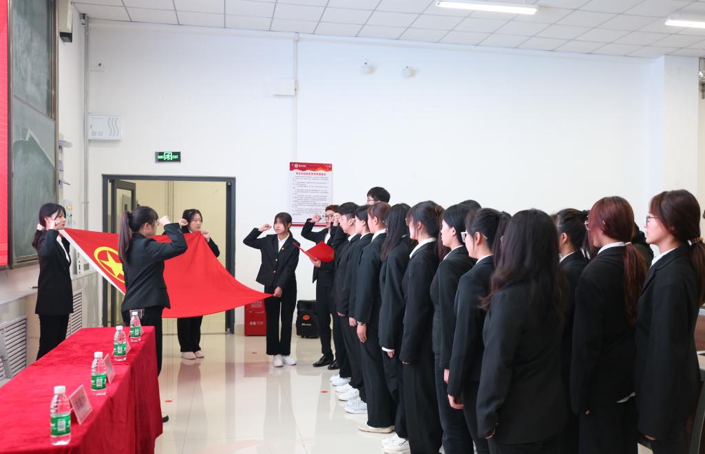 为深入学习贯彻习近平新时代中国特色社会主义思想,贯彻党的二十大精神,进一步增强团员青年的责任感和使命感。beat365官方网站于10月19日在增信楼112室举行了“2023年新团员入团仪式”。学生会主席程晓云主持,团总支书记王元元及50余名新老团员参加。