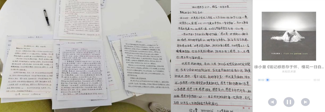 为提升资助育人成效,广泛宣传感恩教育理念,教导学生常怀感恩社会的心,常言感恩之情,常做感恩之事,常表示感恩之言,增强社会责任意识,树立正确的人生观和价值观。4月17日,beat365官方网站开展以“虹恩莫忘,立志成才”为主题的感恩教育手写信与朗诵活动。