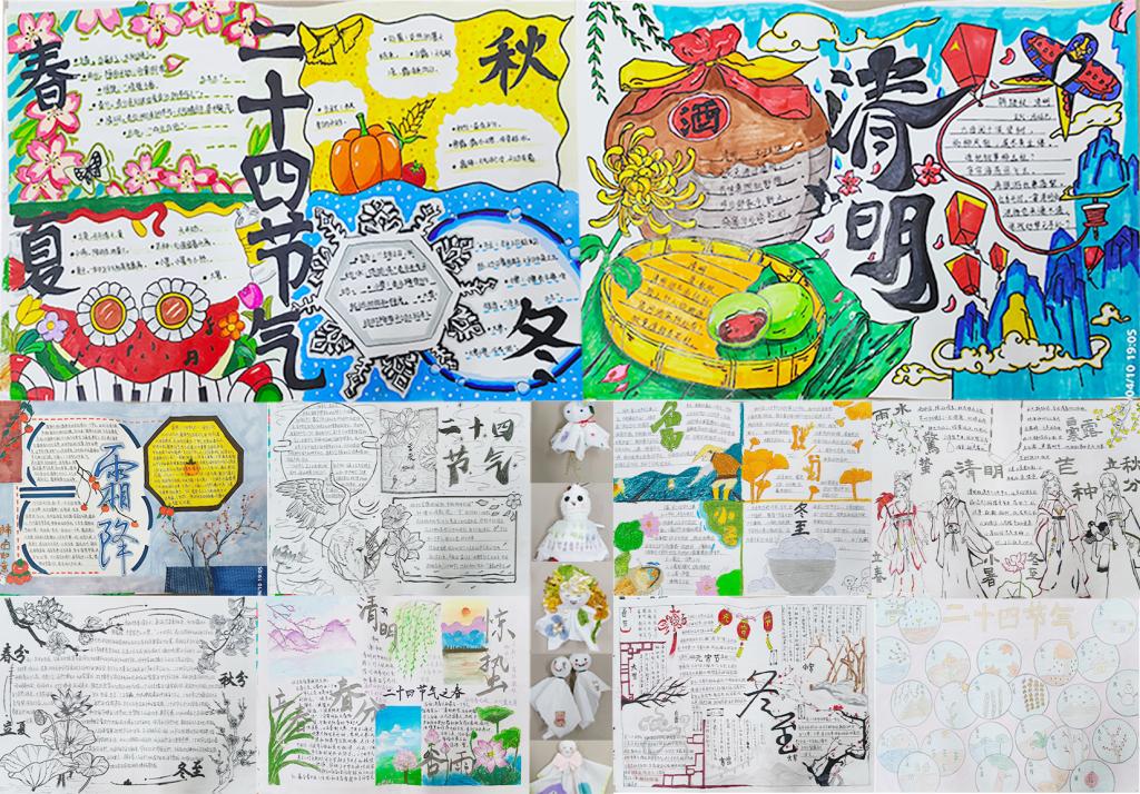 同学们发挥自己的创造力,巧妙运用日常材料手工制作独特新颖、具有艺术感的晴天娃娃,共收到作品29份。通过评审,李红玉的《白露》、周贵玲《四季》荣获“晴天娃娃”设计一等奖。在手抄报制作大赛中,同学们用一笔一画勾勒出传统的节气风景,用绚丽的色彩吸引大家了解二十四节气,提升文化自信,共收取活动作品40份。通过评审,卢馨雨的《传承二十四节气》、赵学斌的《二十四节气手抄报》荣获一等奖。