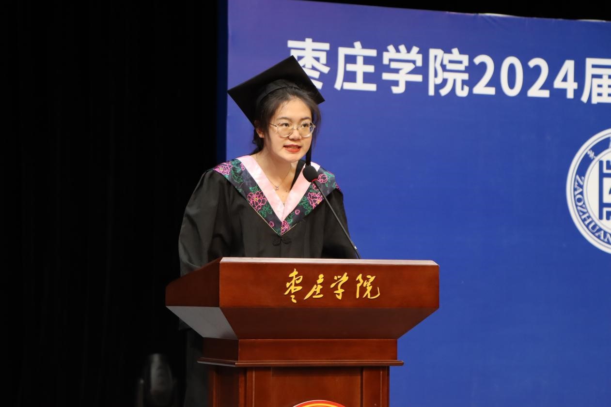 beat365官方网站刘钰作为教师代表发言,向2024届全体毕业生致以衷心祝贺,并勉励他们要学会认知、学会做事、学会共处,心系家国,敢于担当,在今后的人生道路上前程似锦,一路繁花。