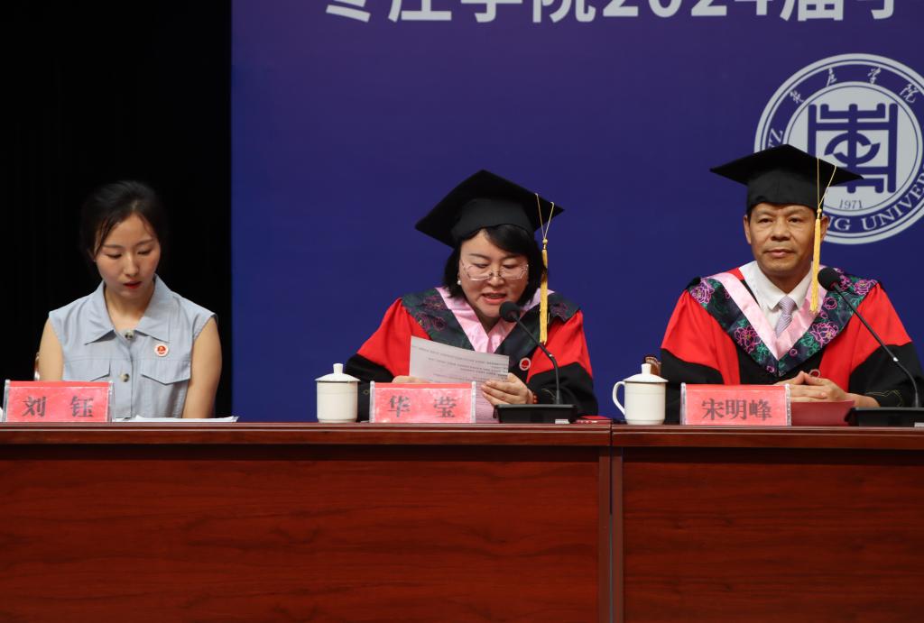 下午3时,在雄壮嘹亮的国歌声中,典礼正式拉开帷幕。段圣玉宣读《beat365官方网站2024届毕业生学士学位授予的决定》及获得学士学位学生名单,同意授予陈文婕等198名普通全日制本科毕业生学士学位。