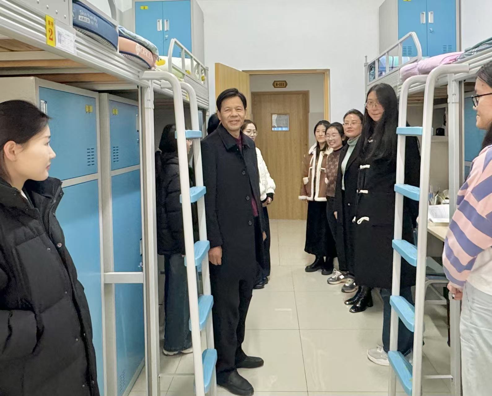 走访宿舍,温暖相随。宋明峰亲切询问了学生们近期的学习和生活状况以及他们对未来的规划,鼓励学生树立远大理想,精心规划学业,珍惜宝贵时光,不断努力提升个人能力。同时,提醒学生们注意保暖,保持室内空气流通,预防疾病传播,希望同学们相互帮助,和谐相处。