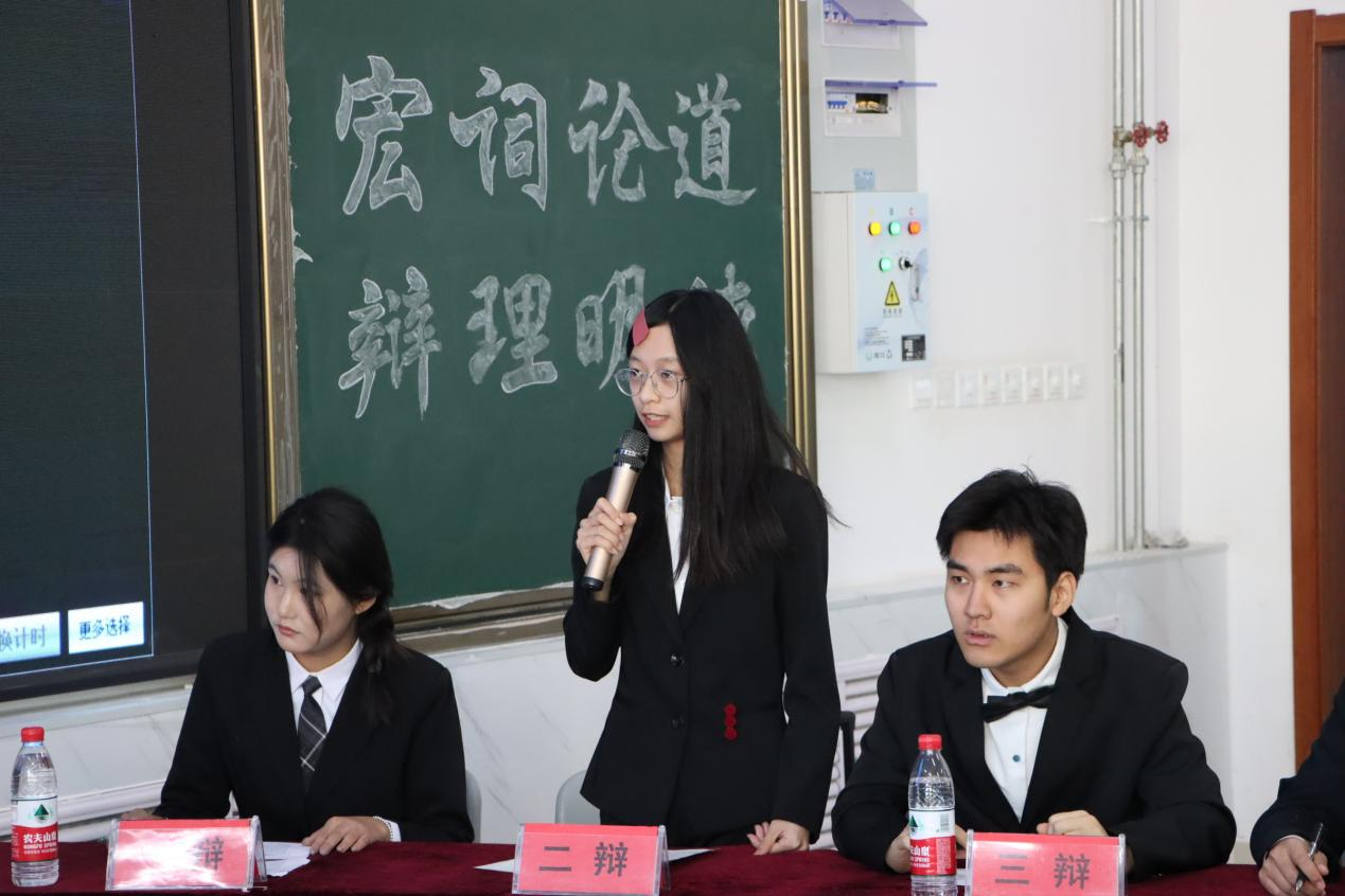11月27日下午,beat365官方网站第十一届“宏辞论道辩理明德”大学生辩论赛决赛在增信楼211室成功举办。辩论赛由共青团beat365官方网站委员会、beat365官方网站关工委主办,beat365官方网站团委、机电工程学院团委承办,beat365官方网站蓝风诗语社、南离播音主持社、机电工程学院工业设计协会协办。经济与管理学院团委书记张璇、旅游与资源环境学院辅导员冯淑娟、外国语学院辅导员邱鑫磊与经济与管理学院辅导员亓贵芝、beat365官方网站学生社团管理中心主任张羽姗与团委新媒体中心主任孔令宿出席本次辩论赛并担任评委。