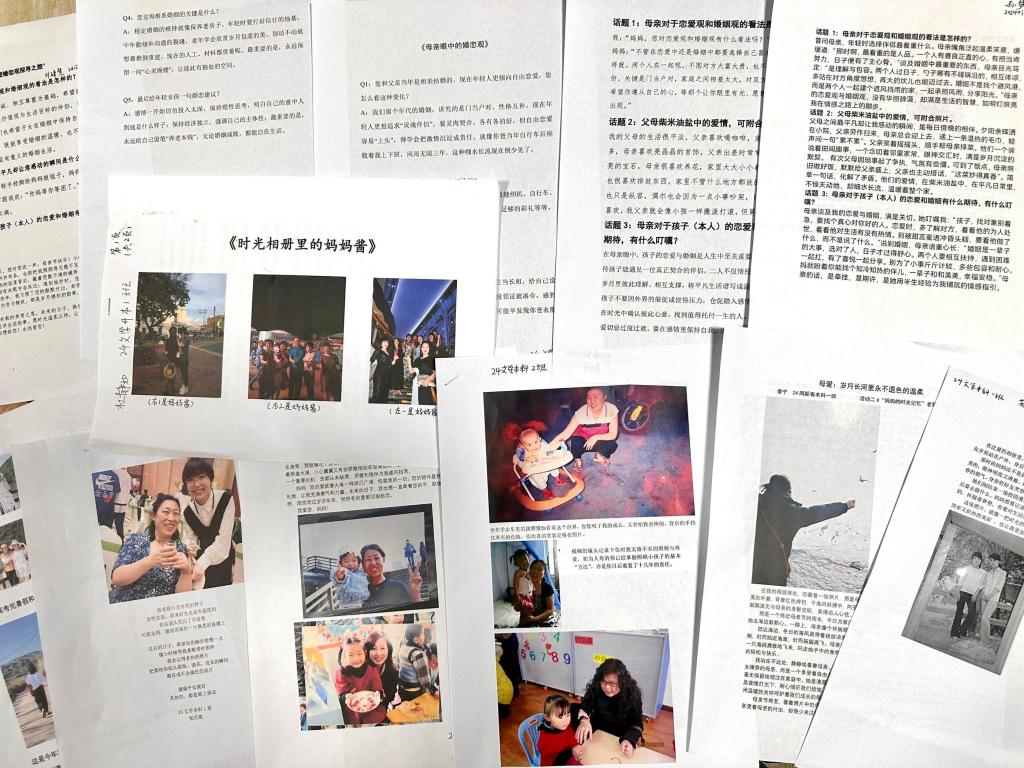 与此同时,活动特别设置“聆听亲语:母爱婚恋观探寻之旅”学生以采访者身份倾听母亲婚恋观。关于婚恋观,一位母亲坦言“年轻时更看重责任感而非浪漫”,另一母亲说“婚姻是两颗心共同浇水的小树”;在探寻“柴米油盐中的爱情”时,学生用镜头记录父母共买食材、修旧物等日常,合照与“分剩饭”“盖毯子”等细节成为爱情的温情注解。而母亲们的叮嘱亦充满时代印记,“先成为翱翔天际的鸟儿,再寻觅那片专属你的蔚蓝”“勿因外界的催促或世俗的重压而草率步入情感的殿堂”“即便步入婚姻的殿堂,亦需坚守独立人格与自信风采”等话语,既满载着殷切的期望,更深藏着对独立人格培养的深刻智慧。