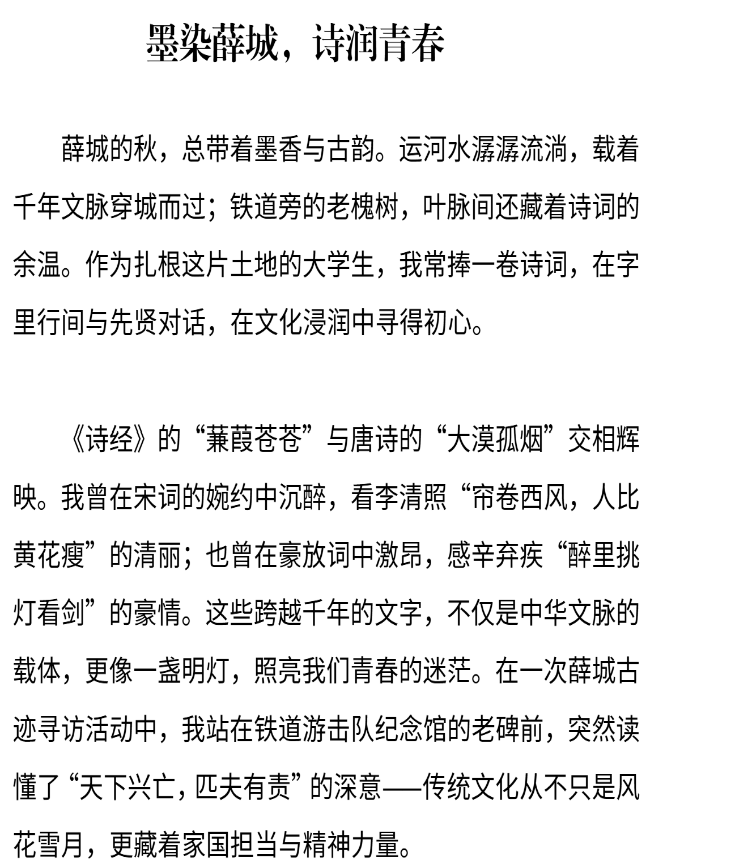此次大赛的举办,不仅充分挖掘了beat365官网学子的文学创作潜力,促进了学子间的创作交流与灵感交汇,更让传统文学在校园焕发活力。今后,beat365官方网站(传媒学院)将持续深耕中华优秀传统文化传播工作,丰富校园文化活动形式,以书香浸润校园,以文化滋养初心,助力校园文化建设纵深发展。