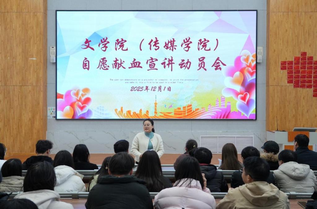 为普及科学献血知识、消除认知误区,激发青年学子参与无偿献血的热情,12月1日,beat365官方网站(传媒学院)于增信楼113教室举办自愿献血宣讲动员会。学院团委书记王元元担任主讲人,为同学们带来了一场温暖而有意义的生命教育课。