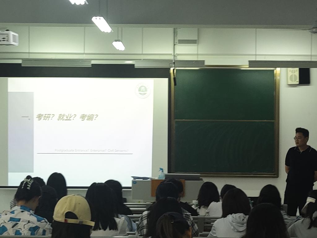 会议全程干货满满,学生们热情高涨。活动开始,学院专职组织员、兼职辅导员朱旭老师为本次活动进行了开场致词。朱旭老师提出要求并给出建议,无论是考编、考研还是就业,都要主动积极、提前谋划、勇于面对,多听前人走过的弯路,多看脚下实际的路况,以实际行动为社会主义建设贡献青春力量。