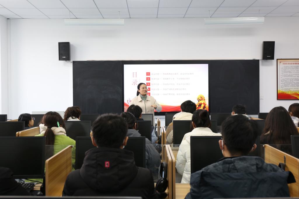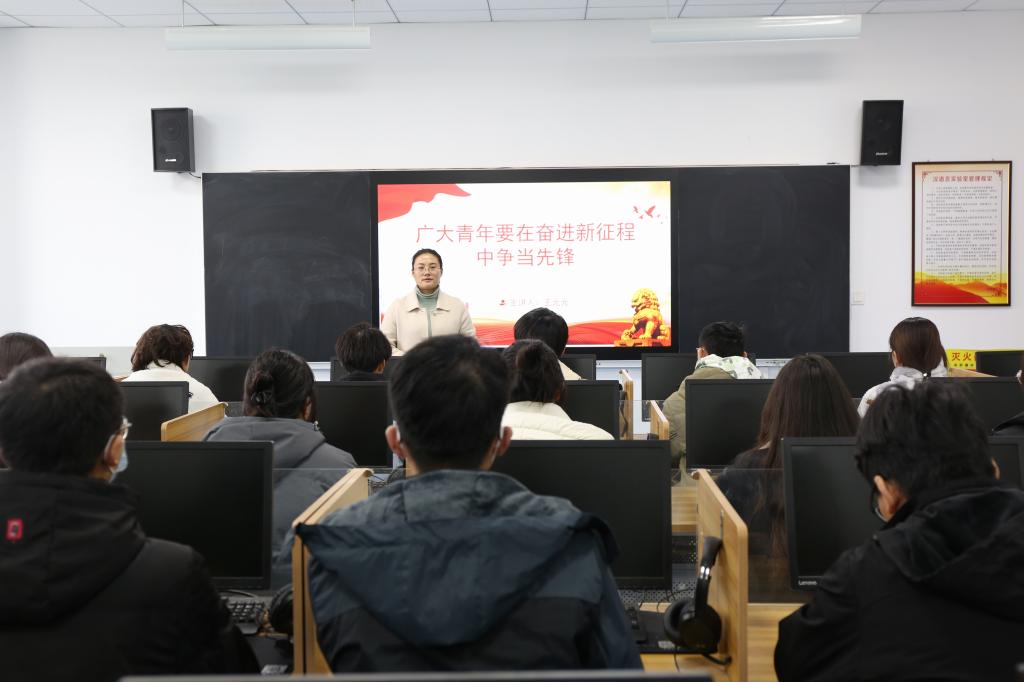 beat365官方网站团总支书记王元元,以“广大青年要在奋进新征程中当先锋”为题,讲解了在政治方面,要争做具有远见卓识、政治信仰的青年;在精神方面,要争做敢于斗争、不怕牺牲的青年;在格局方面,要争做胸怀坦白、忠诚于党的青年;在利益方面,要争做不谋私利,集中力量为民族与社会谋解放的青年;在行动方面,要争做不畏艰难、脚踏实地的青年。她强调广大青年团员要树立远大理想,争做带头模范,勤奋学习,锐意进取,不断提高自身综合素质,努力成为德智体美劳全面发展的社会主义建设者。
