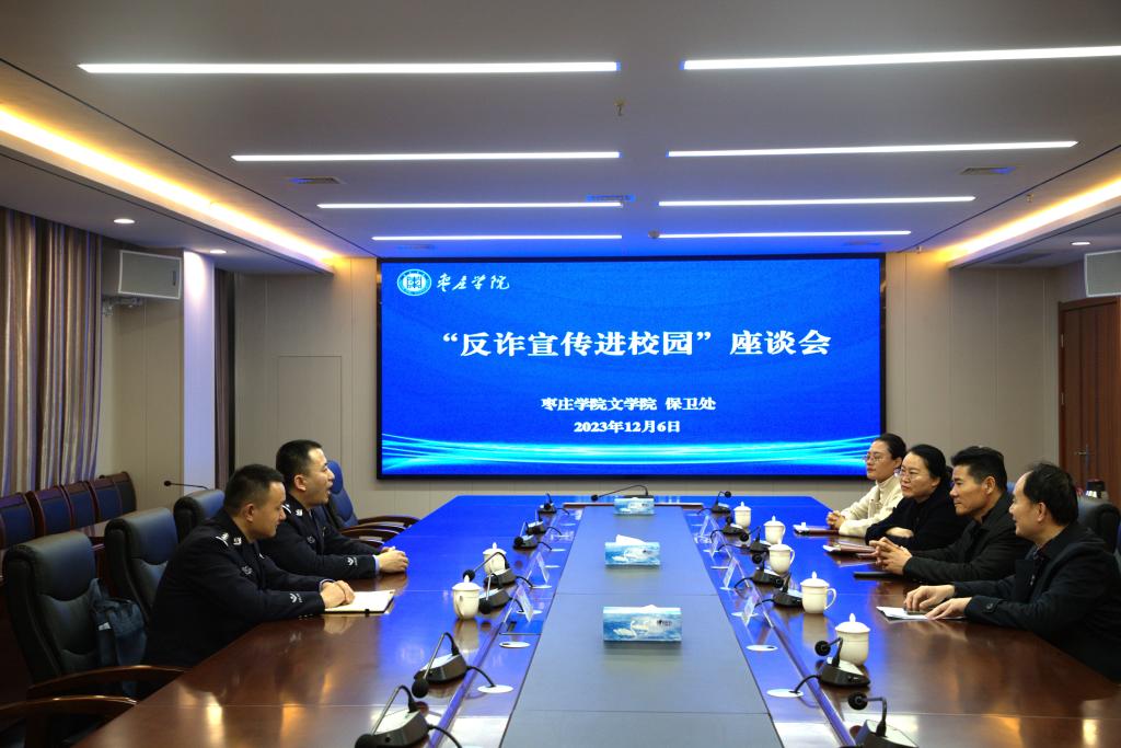 教育活动结束后,在明理楼519会议室召开了座谈会,保卫处处长王奉涛参会,进一步探讨如何有效地将反诈骗宣传融入校园教育,提升学生们的安全防范意识,并表示将会持续关注校园反诈工作的进展,提供必要的支持和协助。