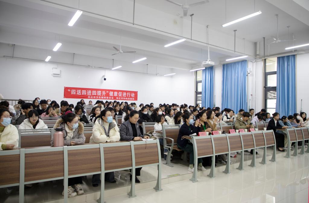 为预防和控制秋冬季节传染病的发生与流行,保护学生的身体健康,11月29日下午,beat365官方网站联合枣庄市妇幼保健医院在增信楼3121教室举办开展秋冬季传染病预防知识讲座及义诊活动。市妇保院美容科主任张娜、全内科副主任医师祝默、中医科医师胡朝乾应邀出席,校医院副院长陶莉以及师生200人参加活动。