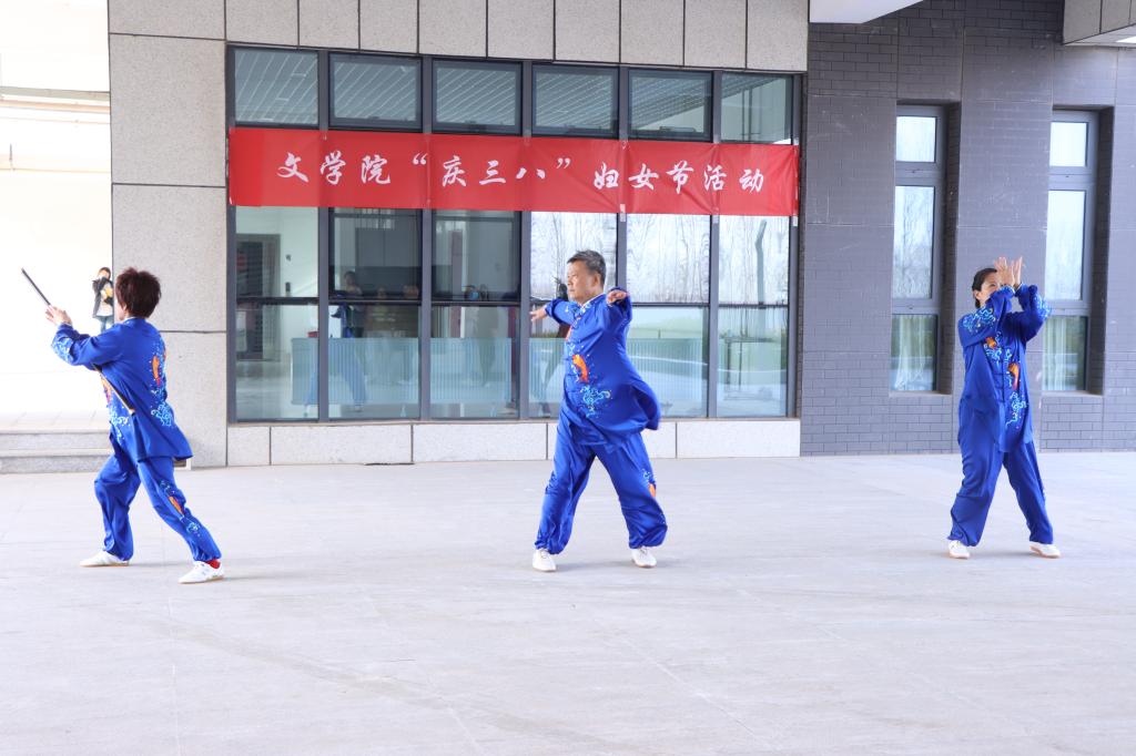 为庆祝“三八”国际妇女节,进一步丰富女教师业余文化生活,激发活力,增强体质,弘扬传统健身项目,beat365官方网站于3月8日下午在新城校区韶华体育场开展了“相约三八,强身健体”三八妇女节庆祝活动,邀请了枣庄市健身气功协会副秘书长许国跃等三位老师现场讲习,beat365官方网站党总支书记宋建修、院长张爱民、全体女教师参与此次活动。