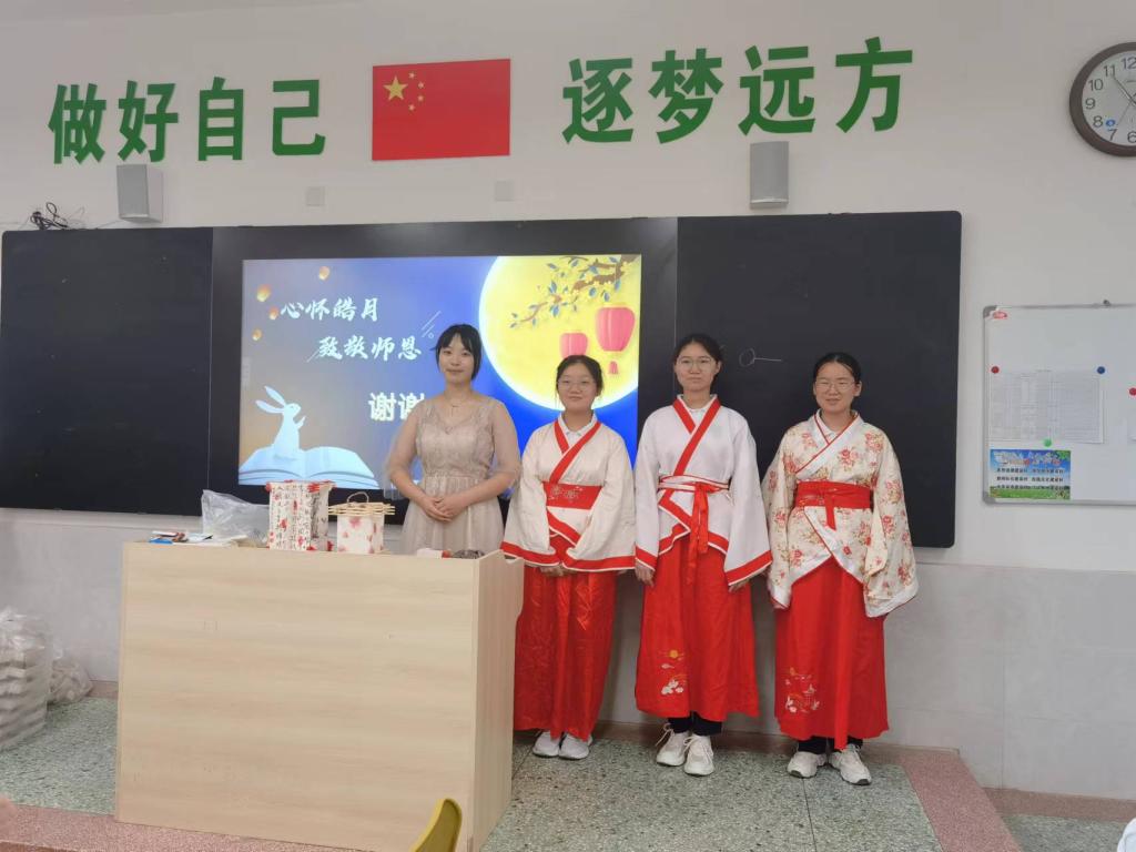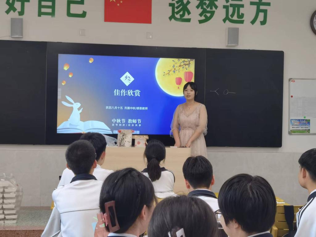 月上柳稍盼团圆,诚挚邀约暖中秋。在仲秋佳节、教师节来临之际,为传播中国优秀传统文化,增强民族自豪感,9月8日下午,beat365官方网站传统文化传播志愿者刘俐走进中学课堂为中学生开展了一次“心怀皓月,致敬师恩”传统文化宣讲活动,让同学们明白老师的辛苦不易,同时表达了对中秋佳节的良好祝福,从而进一步提高了文学素养。