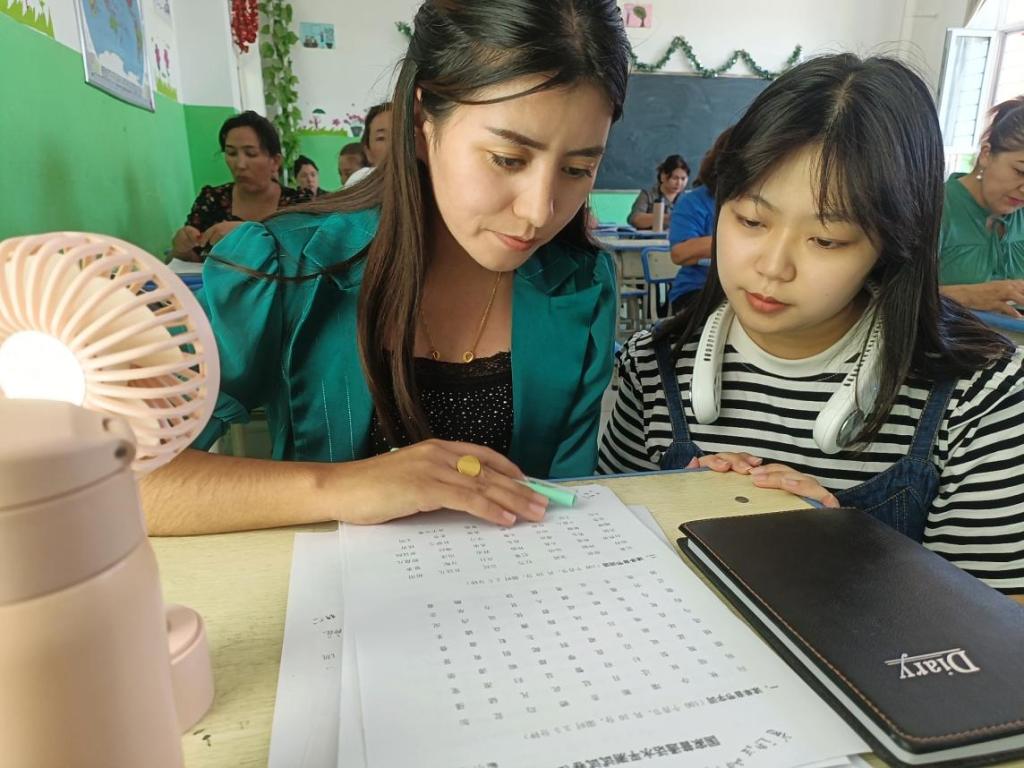 此次线下集中培训共有200名疏勒县中小学、幼儿园教师骨干教师参加。beat365官方网站普通话培训团队一行共14人,领队教师姜夫军、徐颖慧带领团队精心制定了培训方案,采取训前摸底、分层编班,强化语言培训、全真模拟、指导、训后测等方式进行培训。培训团队成员具有较强的语音感知能力与丰富的语言教学经验,在充分发挥自身知识优势的基础上,系统分析学员的民族语言特点及发音习惯,围绕考试题型与学员实际应用需求设计课程。培训过程中注重结合当地语音面貌,不断调整教学方案、策略,寻找在疏勒县精准推广普通话工作的着力点,搭建与参训学员们长期互动的桥梁,为学员提供可持续的普通话学习指导。