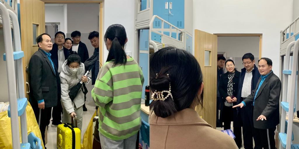 随后,各位领导老师来到新同学学生宿舍,与同学们亲切地唠家常,了解他们在生活上、学习上的困难,并及时给予帮助,鼓励新同学们尽早适应转专业的生活,并提醒大家,疫情形势依旧严峻,不能放松警惕,希望全体同学严格按照学校、学院要求,理解支持有关政策,师生齐心协力做好疫情防控工作。