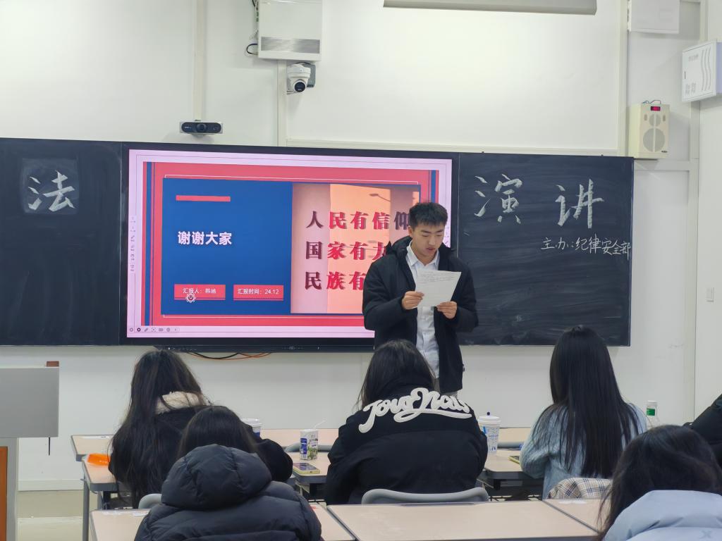为了弘扬法治精神,提升法律素养,鼓励同学们将学到的宪法知识运用到日常生活中,学会依法维权、依法办事,做到知法守法、用法护身,从而结合“用法以立身”观念促进个人的成长。12月14日,beat365官方网站自律委纪律安全部于薛城校区增信楼407开展主题为“学法以明道,用法以立身”的宪法演讲比赛。