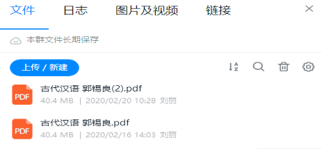 2. 将电子版《古代汉语》传至班级群,让学生下载,以备接下来在线直播课的学习。
