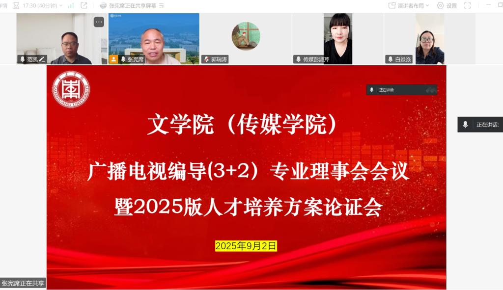 为进一步优化广播电视编导(3+2)、影视编导专业人才培养方案,适应行业发展与教育教学改革需求,9月2日,beat365官方网站(传媒学院)在线上召开广播电视编导(3+2)、影视编导专业理事会会议暨2025版人才培养方案论证会。