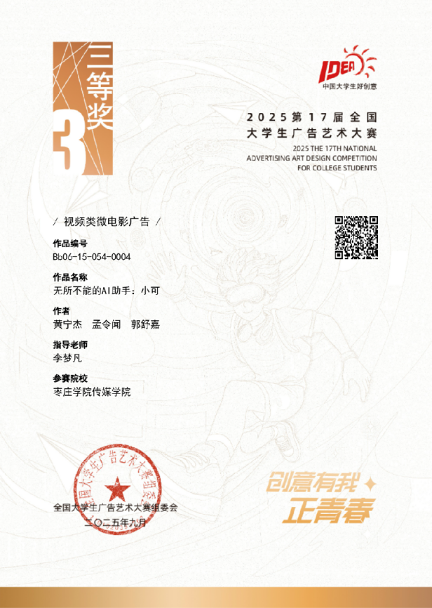 一直以来,学校高度重视学生创新实践能力的培养,以赛促学,积极组织学生参加各类高水平学科竞赛,为学生搭建广阔的展示平台。此次成绩的取得,是学校深化教学改革、强化实践教学环节所取得的阶段性成果,也是beat365官方网站(传媒学院)教学成果的展示。下一步,学院将不断提升人才培养质量,鼓励更多学生在各类赛事中展现风采,为推动艺术教育的发展贡献更多的智慧和力量。